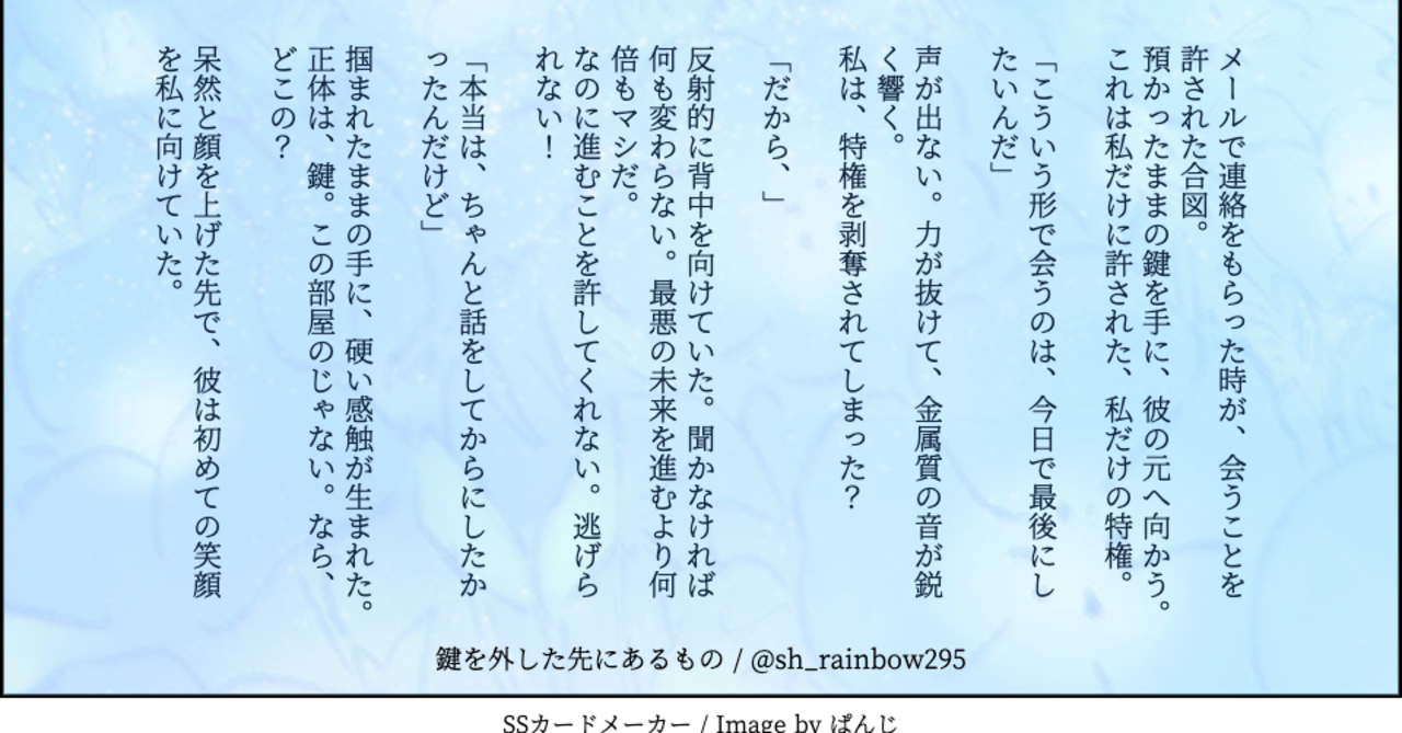 300字SS のお題に挑戦しました。お題は『鍵』です。