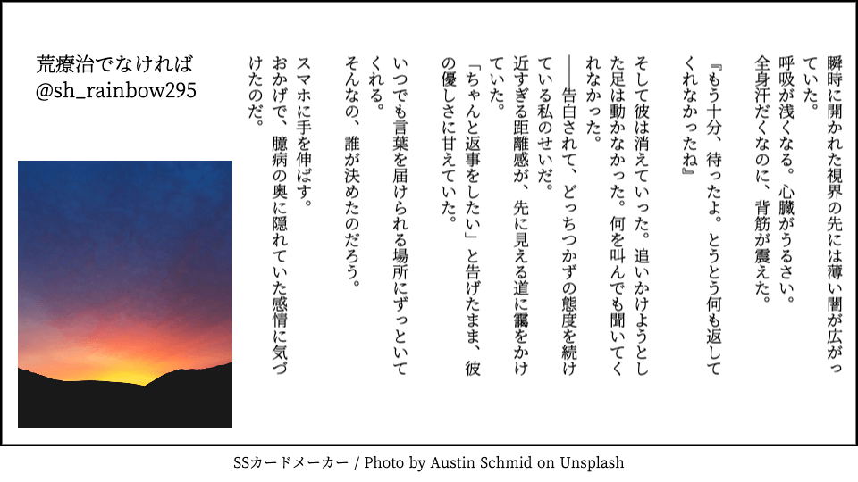 2025/10/04 22:41:49 ショートショート・その他 - 【300字SS】必然で唐突な運命