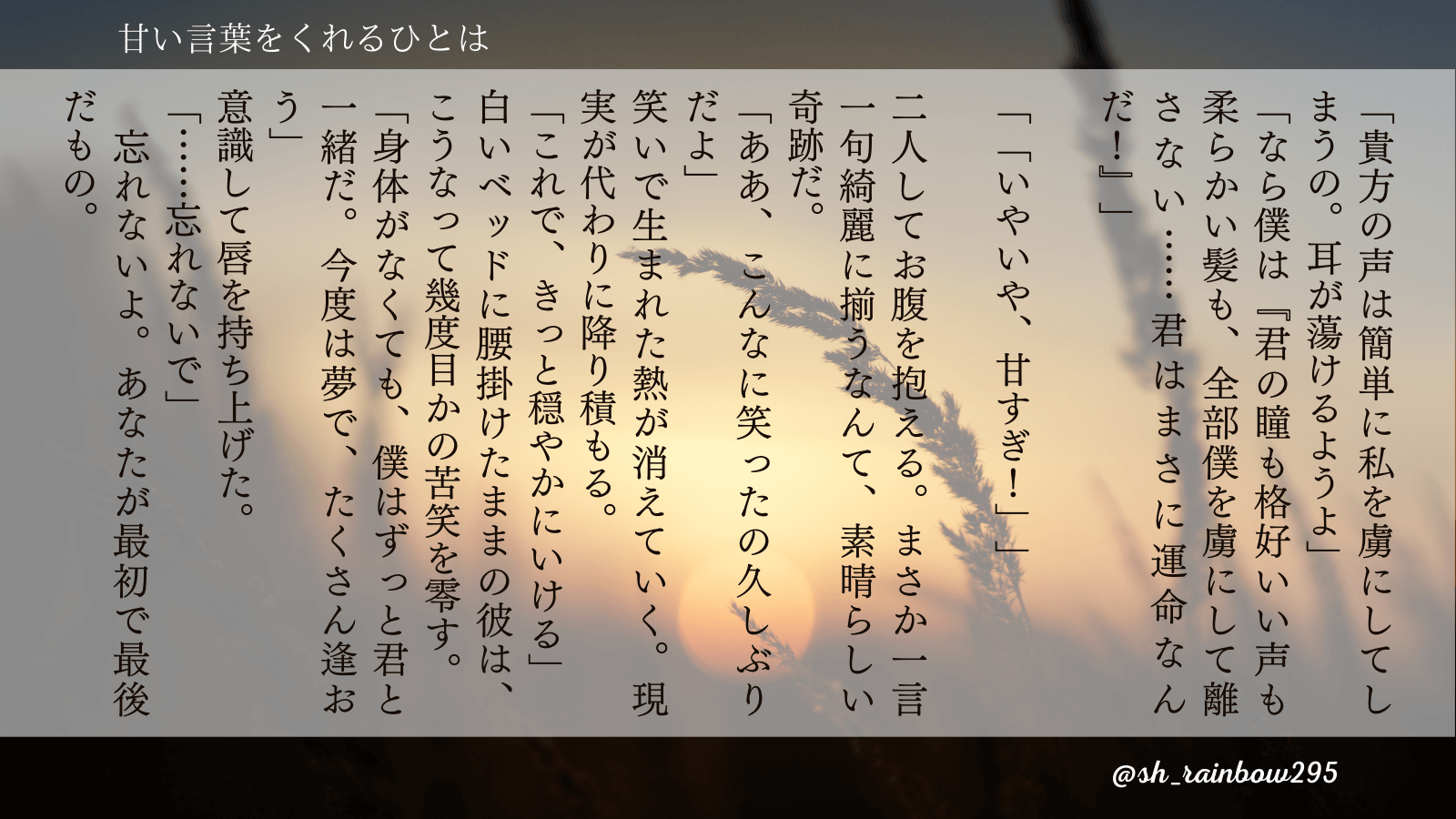 星空と虹の橋の小説を掲載しています。