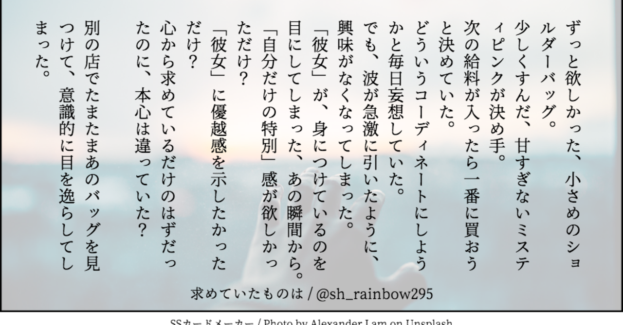 別の店でたまたまあのバッグを見つけて、意識的に目を逸らしてしまった。
